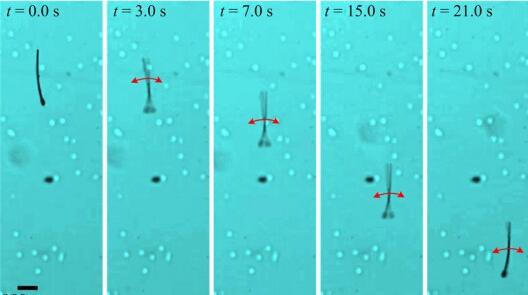 實驗顯示,游泳者游泳者和微游泳者粘稠環(huán)境中表現(xiàn)令人非常滿意和驚喜。尤其是對微型游泳者的進一步實驗中,后者不僅可以攜帶“貨物”,還可像細菌一樣旋轉運動。
