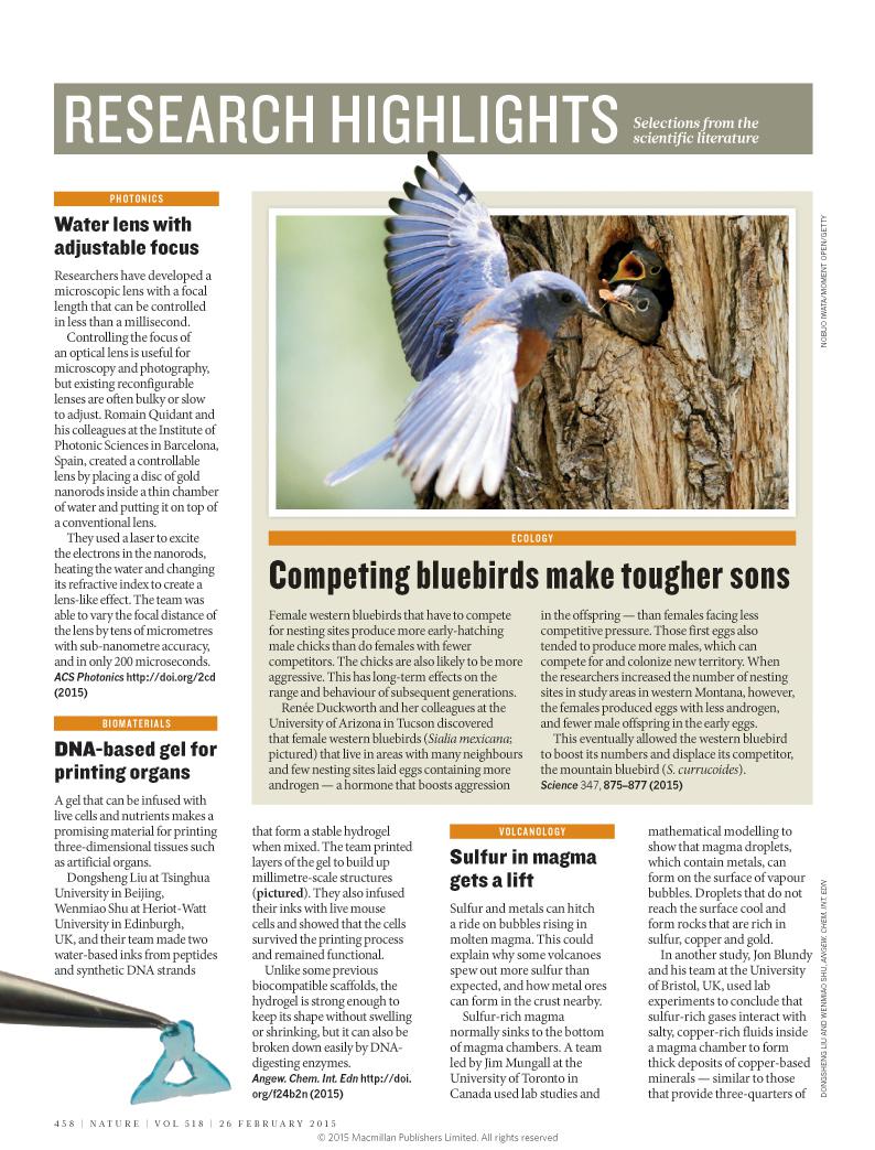 最近,劉冬生課題組與英國(guó)瓦特大學(xué)舒文淼(Will Shu)的合作項(xiàng)目獲得突破性成就,他們成功地將DNA水凝膠材料應(yīng)用于活細(xì)胞的3D打印,其論文發(fā)表在《德國(guó)應(yīng)用化學(xué)》并予重點(diǎn)報(bào)道。2月26日,《自然》雜志也報(bào)導(dǎo)了其研究成果,并評(píng)價(jià)該材料為“一種非常有前景的打印三維組織和人工器官的材料。”