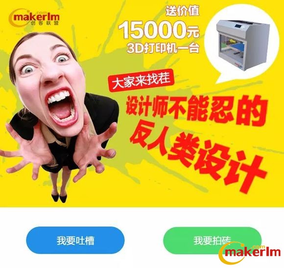 5月中旬有創客聯盟與拓斯達共同舉辦的--大家來找茬:設計師不能忍的反人類設計吐槽活動,在昨天已經完美落幕。活動共有30個吐槽作品評選,網友累計拍磚9856次,最后由設計師湯寶寶獲拓斯達世界領先水平的