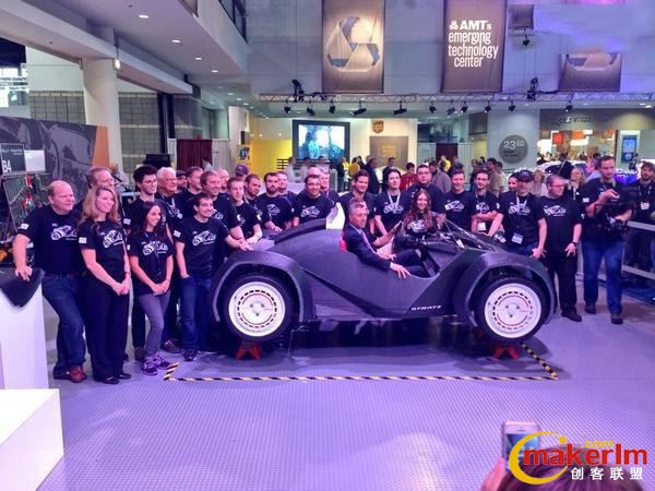2014年9月,在芝加哥國際制造技術(shù)展(IMTS)上,Local Motors現(xiàn)場打印了一臺完整汽車——這是世界上第一臺3D打印汽車,從打印到裝好僅用44小時(shí),震驚了全世界。該公司當(dāng)時(shí)宣布將在5年內(nèi)在全球建造50座微工廠,開創(chuàng)一個(gè)蓬勃發(fā)展的3D打印汽車制造業(yè)。