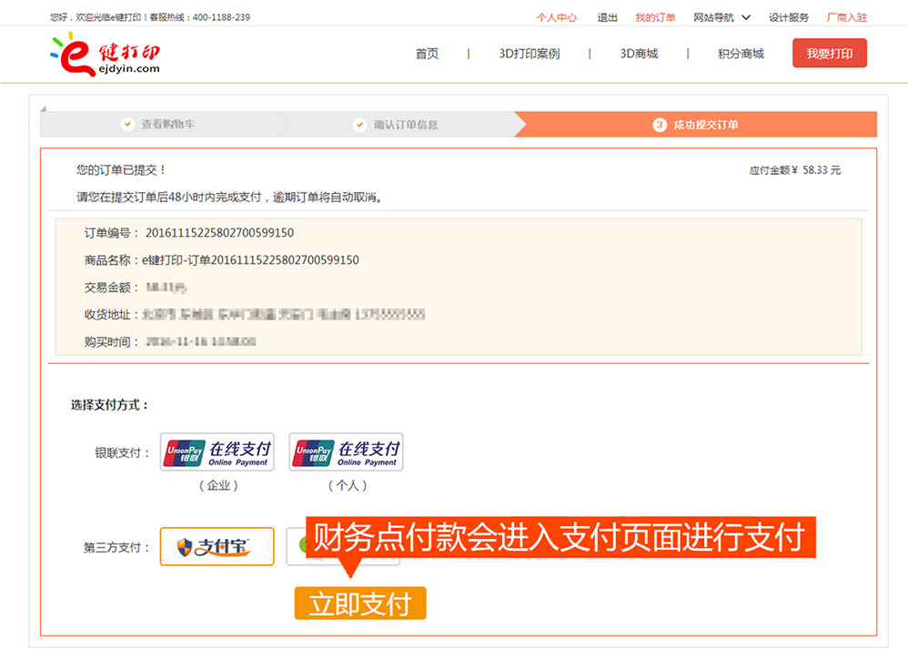- 最新成交 深圳市3D打印訂單 138****2618 訂單金額¥517.94元 已付款成功