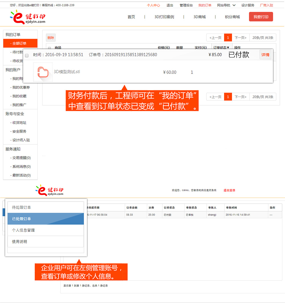 - 最新成交 廣州市3D打印訂單 135****6016 訂單金額¥647.24元 已付款成功